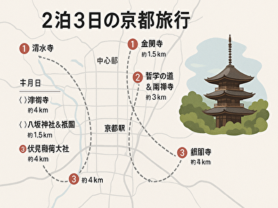 京都2泊3日の旅|効率よく巡るモデルコースとおすすめホテル5選【移動距離つき】